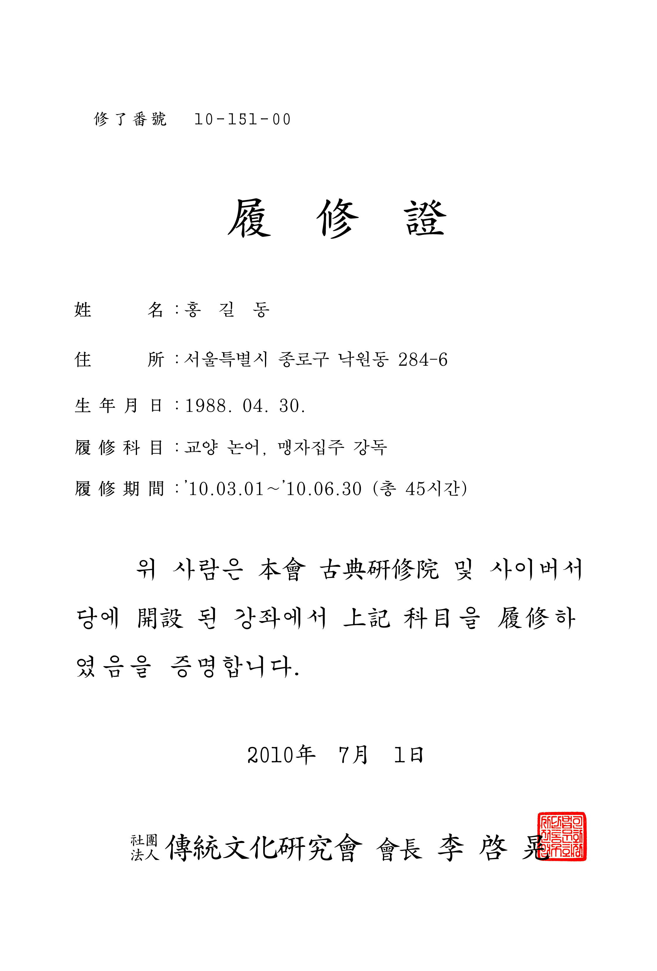 [공통] 이수증(수강확인서) 발급 방침